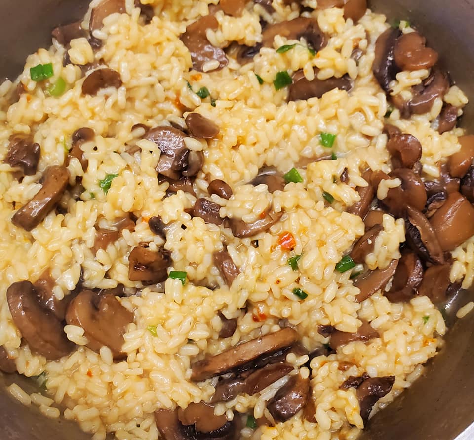Pork Milanese: Pan-fried Breaded Pork Loin Cutlet, topped w/ Arugula, Shaved Parmesan, & Lemon Vinaigrette, & served w/ Mushroom Risotto & Oven-Roasted Zucchini.