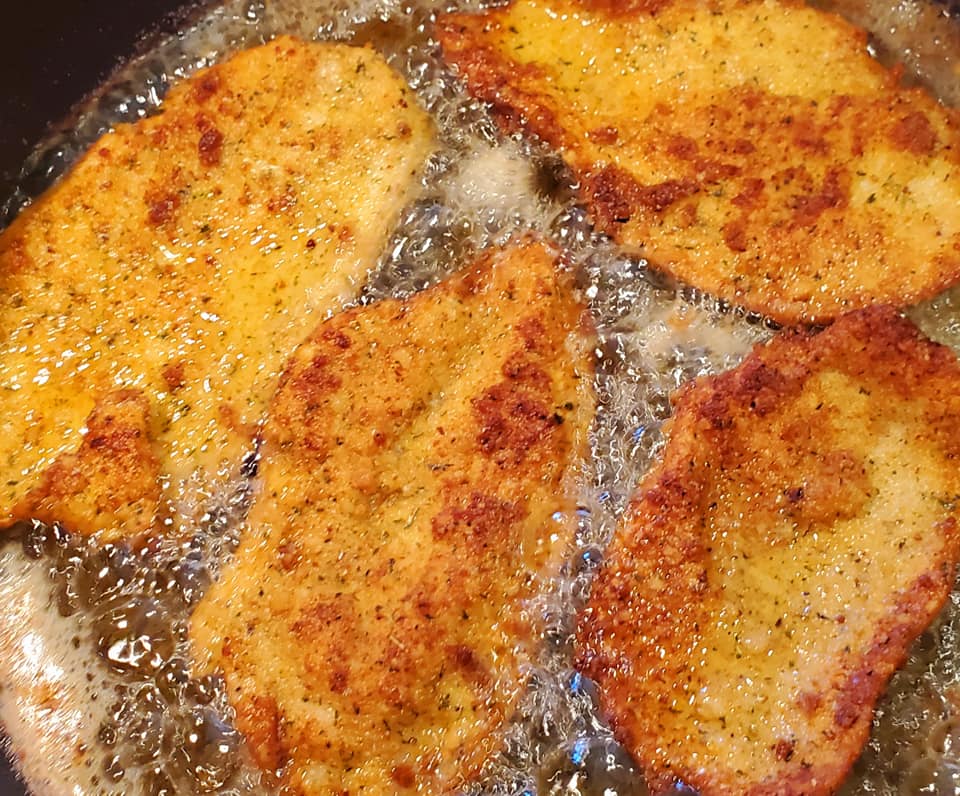 Chicken Parmesan Light: Pan-fried Breaded Chicken Cutlet, baked w/ Marinara & Fontina Cheese, served w/ Angel Hair in Marinara & Homemade Garlic Bread.
