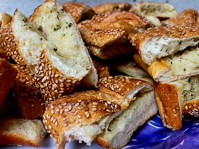Chicken Parmesan: Pan-fried Breaded Chicken Breast Cutlet topped w/ Marinara, Fresh Basil, Parmesan & Fresh Mozzarella, Baked to Perfection, served w/ Classic Caesar Salad & Homemade Garlic Bread.