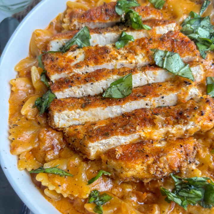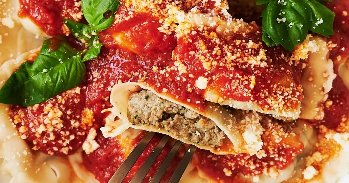 Tortellini Alla Vodka: Five-Cheese Tortellini in a Rich & Creamy Vodka Sauce, served w/ Caprese Salad Skewers, drizzled w/ Balsamic Glaze & Homemade Garlic Bread.